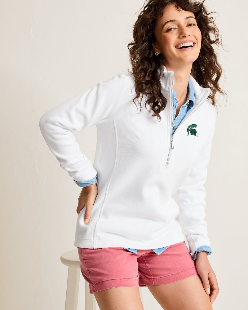 Georgia Red Half Zip is a beautiful color. Material is soft and very comfortable. Nice fit.