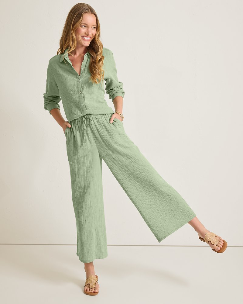 Island Gauze High-Rise Cropped Wide-Leg Pants