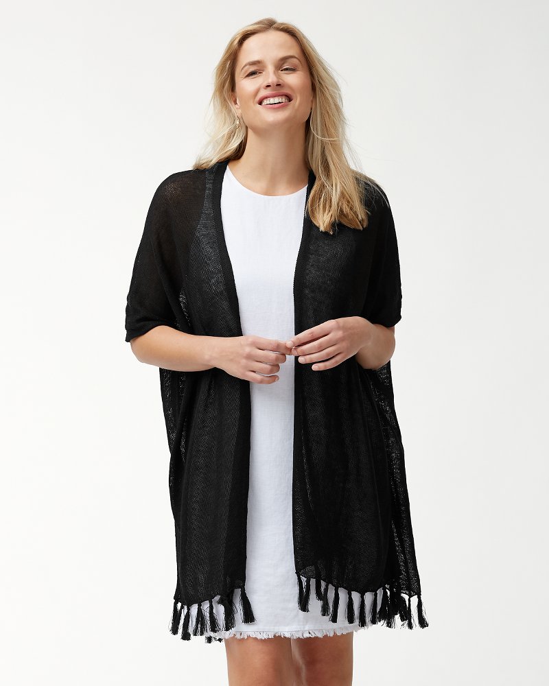 The navy fringe cardigan can be dressed up or down. Perfect for travels.