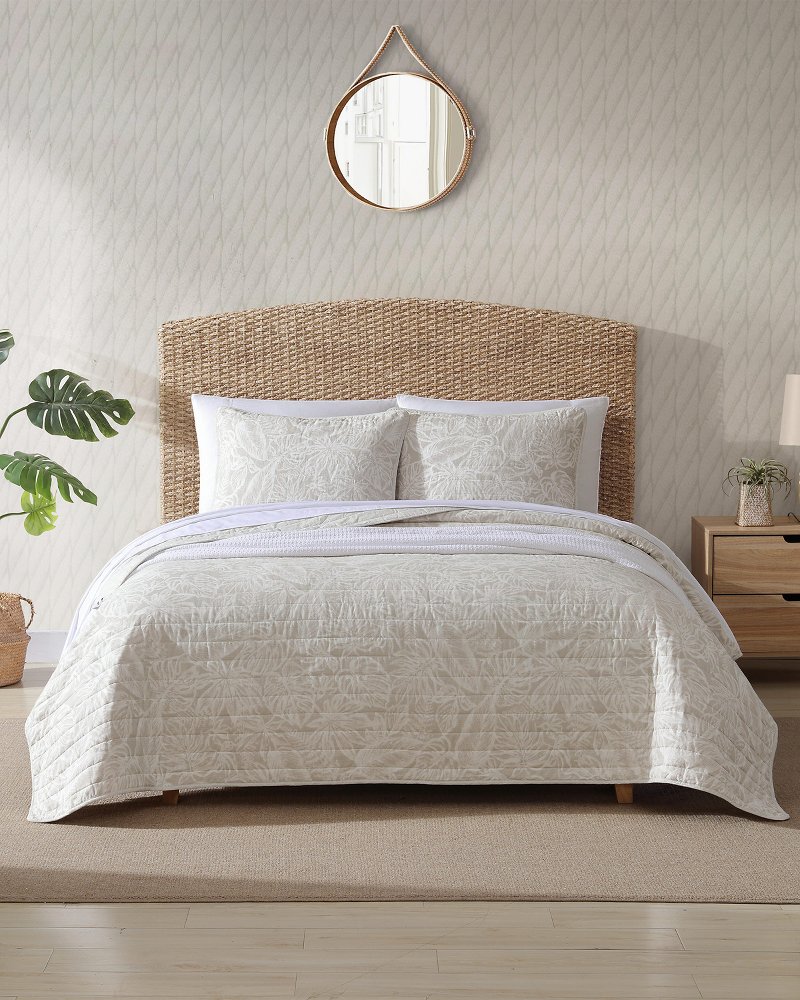 [This review was collected as part of a promotion.] I was excited to try out this Tommy Bahama diamond isle green quilt! I love the color, so relaxing for a bedroom. The quality is great and is comfortably soft. It is however, a little thin and I need another blanket while sleeping.