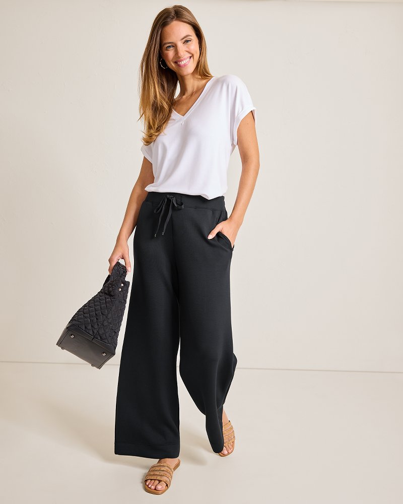 Softest material that somehow keeps you warm and cool at the same time. Runs large, don't size up. It has pockets, but they're not quite deep enough to adequately contain my iPhone ProMax oversized phone. Because of this, I will not wear this set during a travel day.