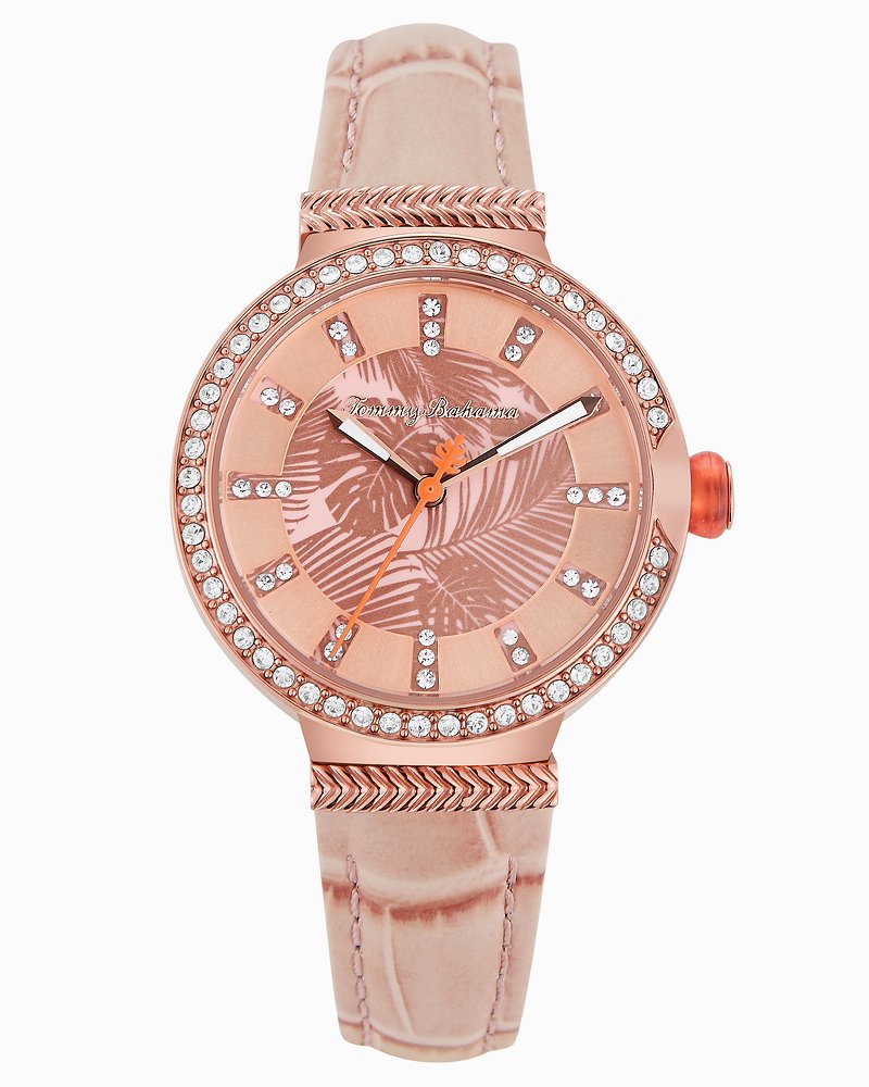 Rated 5 out of 5 by from Beauty for Your Wrist I bought this watch in the light green/gold at a brick and mortar Tommy Bahama store. I wear it with all my resort wear. It’s gorgeous! The palm fronds on the face are subtly rendered making the crystals sparkle sweetly. My twenty-something daughter admired It. She will be receiving it in rose for Christmas.
