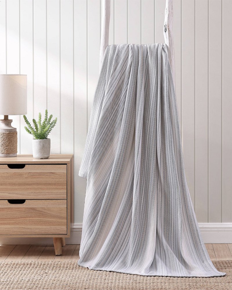 Rated 4 out of 5 by from Great Lightweight Summer Couch Blanket [This review was collected as part of a promotion.] Blanket is very thin and lightweight and perfect for summer. We have been keeping this on the couch to cozy up. Always like using a queen on a couch for extra covers! Love the texture of it, will be interesting to see how it holds up after cleaning!