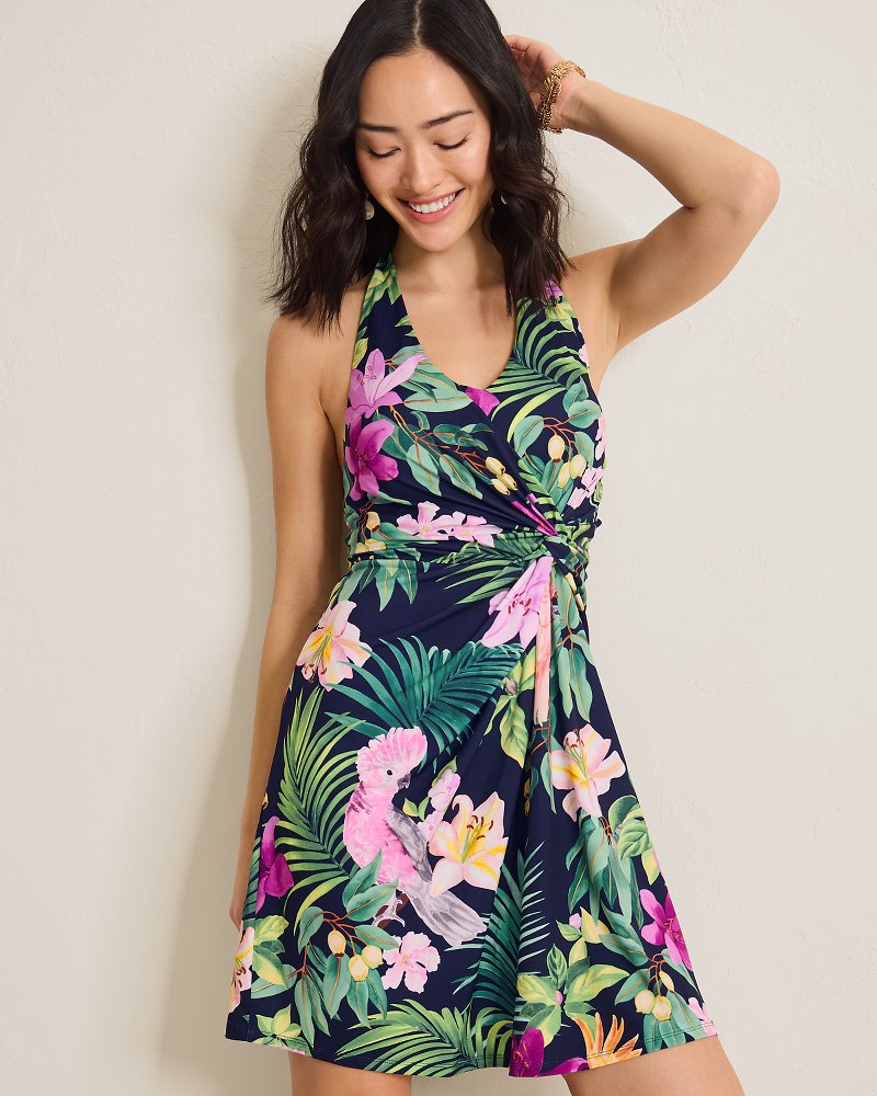 Sophia Tropical Bliss Faux-Wrap Halter Dress